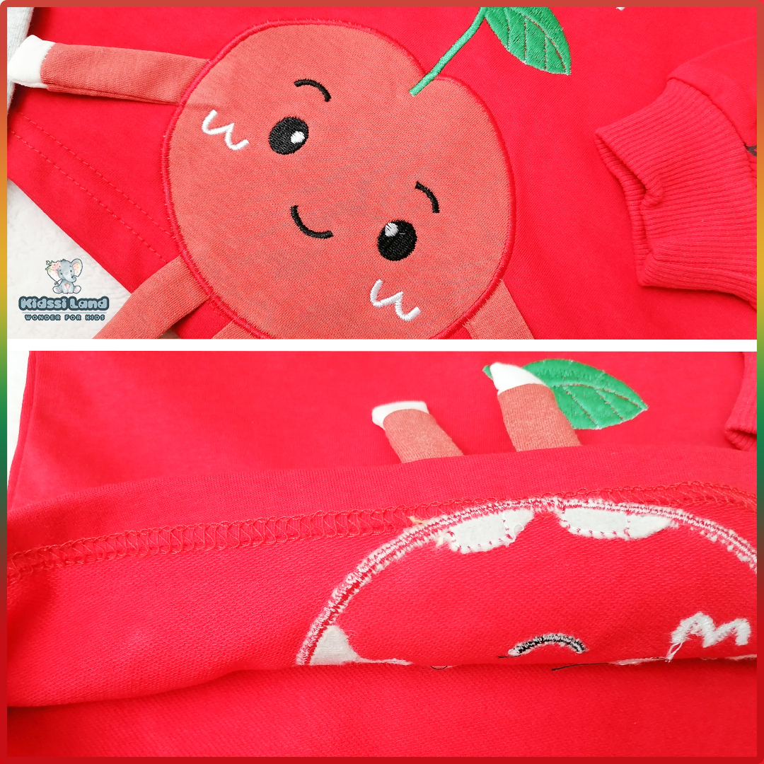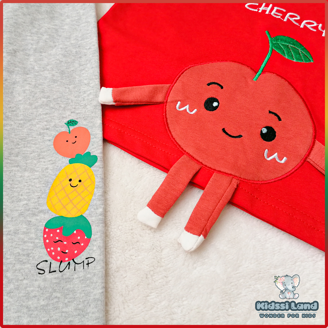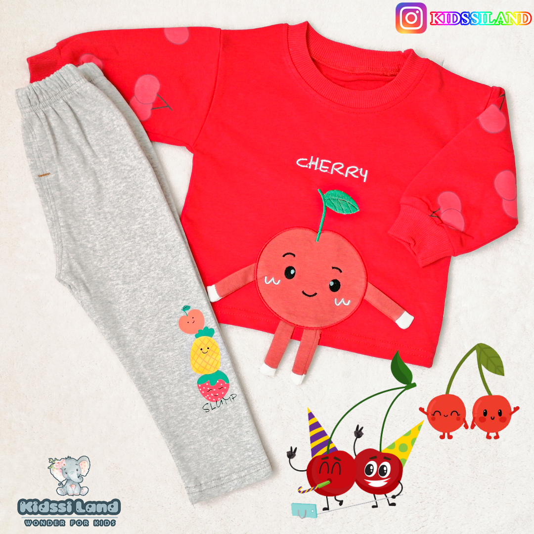 ست دوتکه بلوز دورس تکه دوزی دخترانه طرح آلبالو